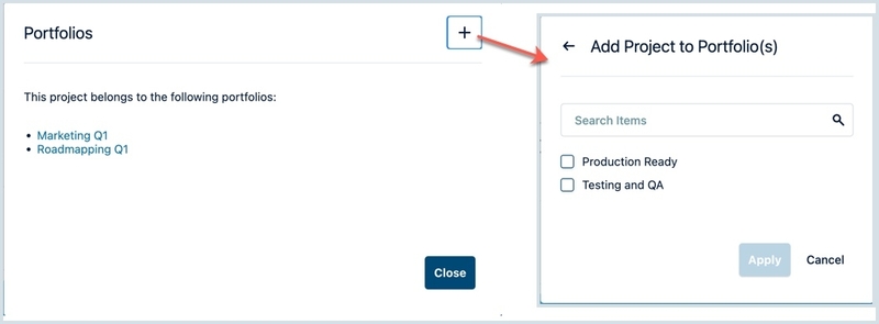 Hover over the Portfolio label, then click to see a list of portfolios that the project is associated with: