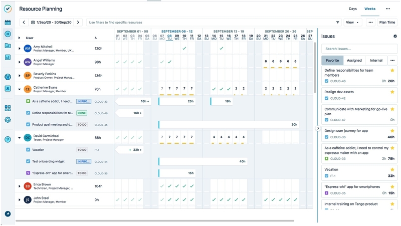 You can view the plans per Jira issue for each resource by expanding their name in the resource list.