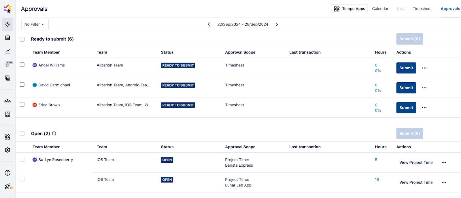 Tempo Project Viewer - view projects that they’ve been granted access to and approve time in those projects.