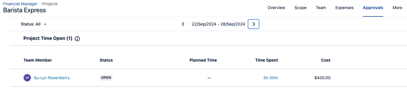 Both timesheet and project approvals are now available in My Work under the Approvals tab. This centralizes project and team-level approvals, enabling Project and Team Leads to efficiently approve hours for multiple users across various teams and projects in a single location. Project approvals are only available when Financial Manager is installed with Project Time Approval enabled.