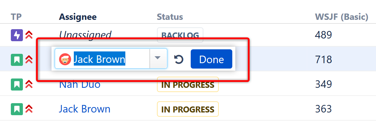 Most issue fields can be edited directly in the Structure panel – you can edit a field's value by double-clicking it (if the field is added to the Edit Screen in Jira).