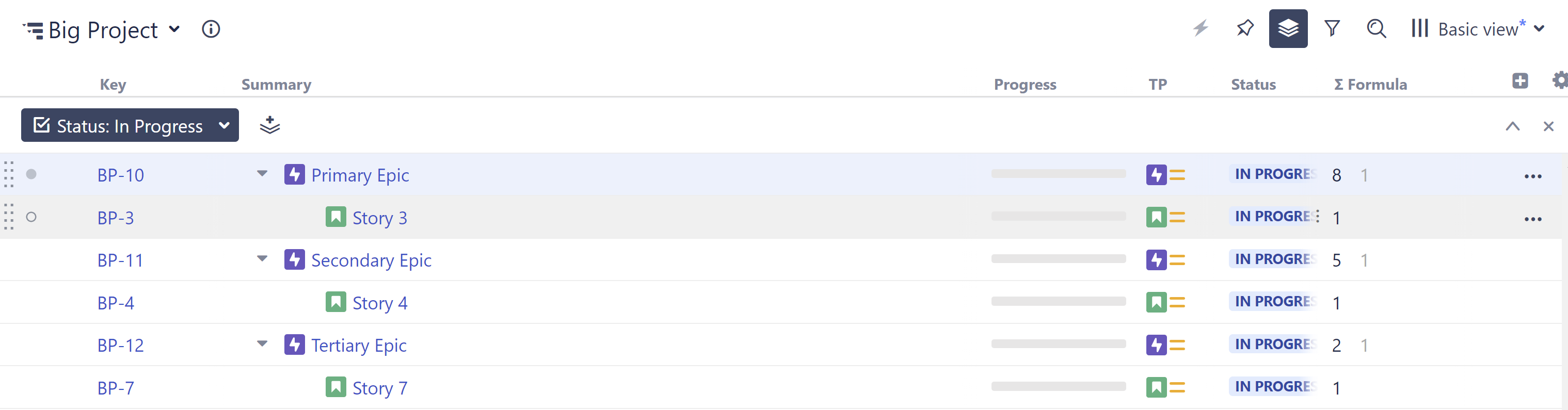 The Filter by Field transformation allows you to quickly filter the issues in your structure based on values in a Jira field. This allows you to focus on specific issues, such as issues from the next fix version, issues assigned to specific users, issues in a specific set of statuses, and more. JSM users can also filter by Assets attributes.