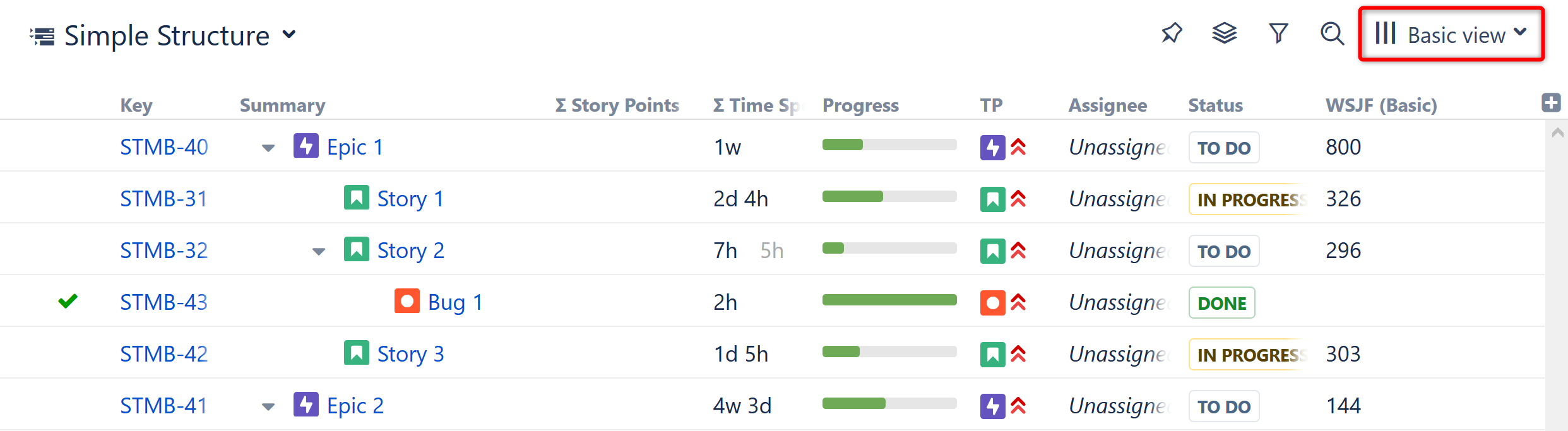 On the Structure Board, the current view is displayed in the top right corner. Click here to select a new view or save changes to the current view.