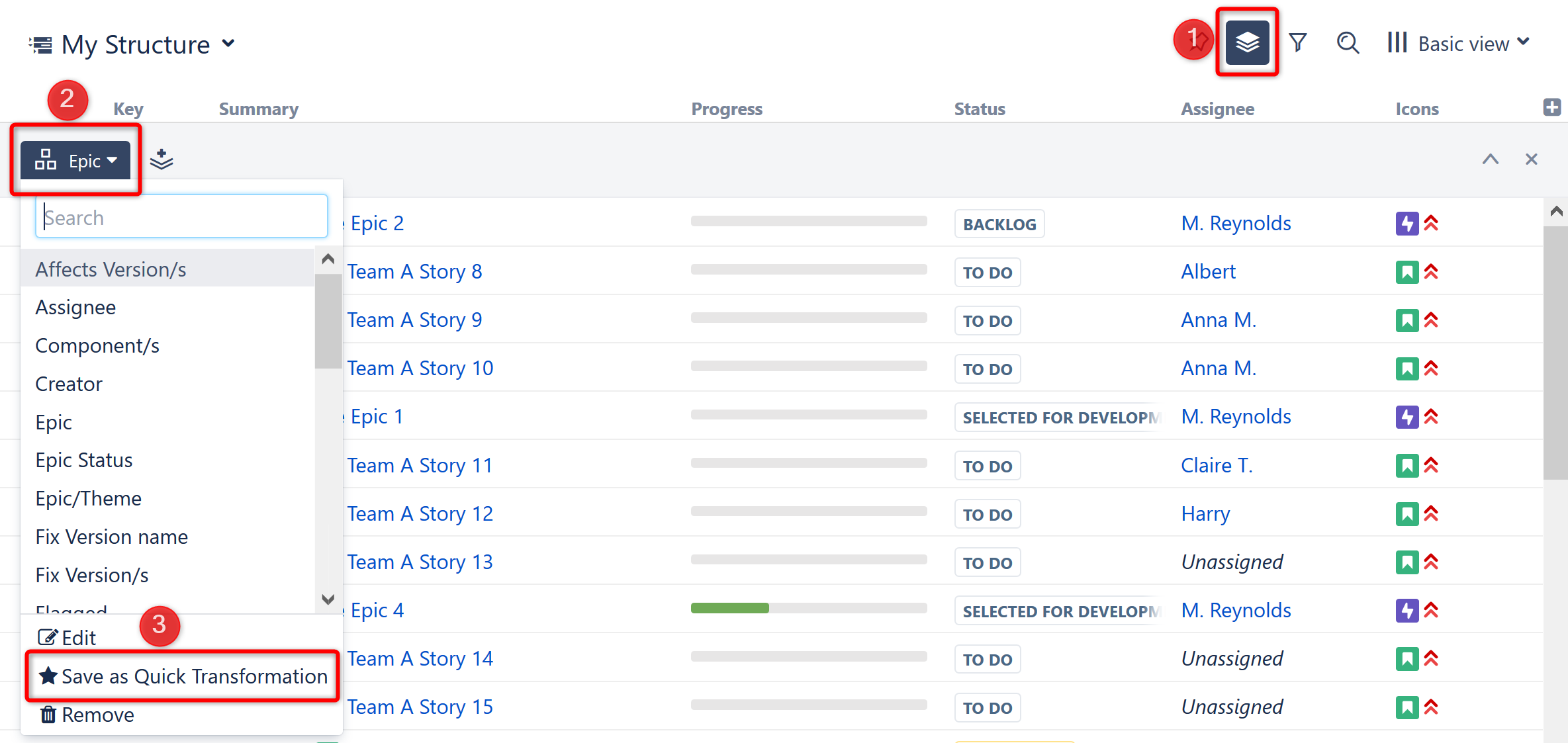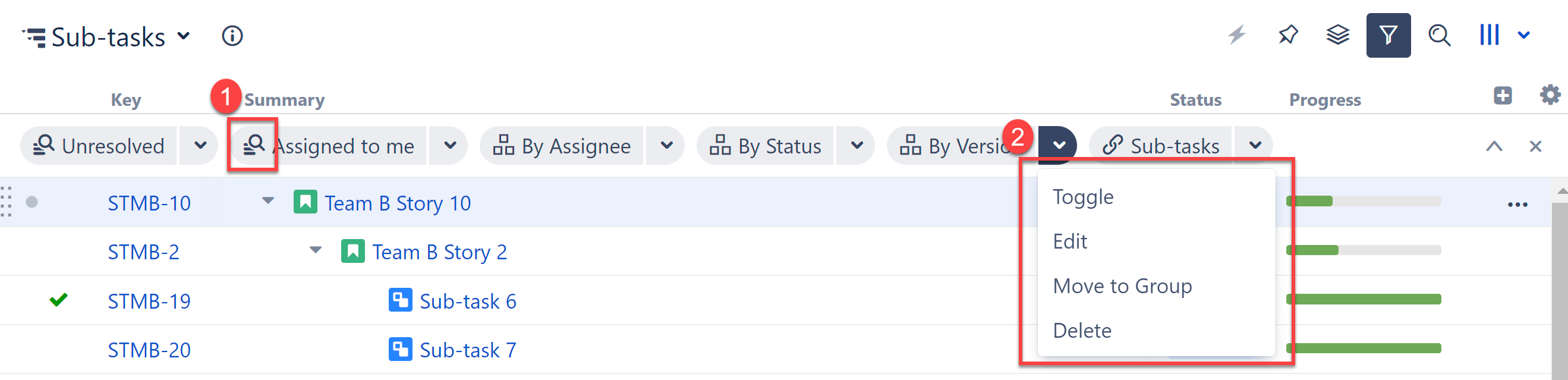 For example, if you click By Assignee, By Status, and then By Version, it will: