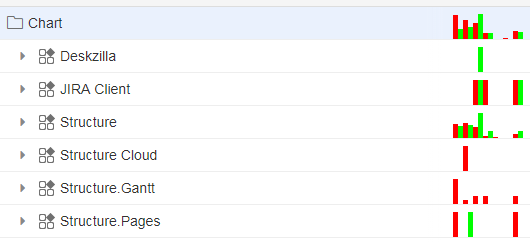 You can get even more creative and use wiki markup to build mini-charts – including this simple burn-down chart. In this example, our chart displays created issues in red and resolved issues in green, with each pair corresponding to one day in a week.