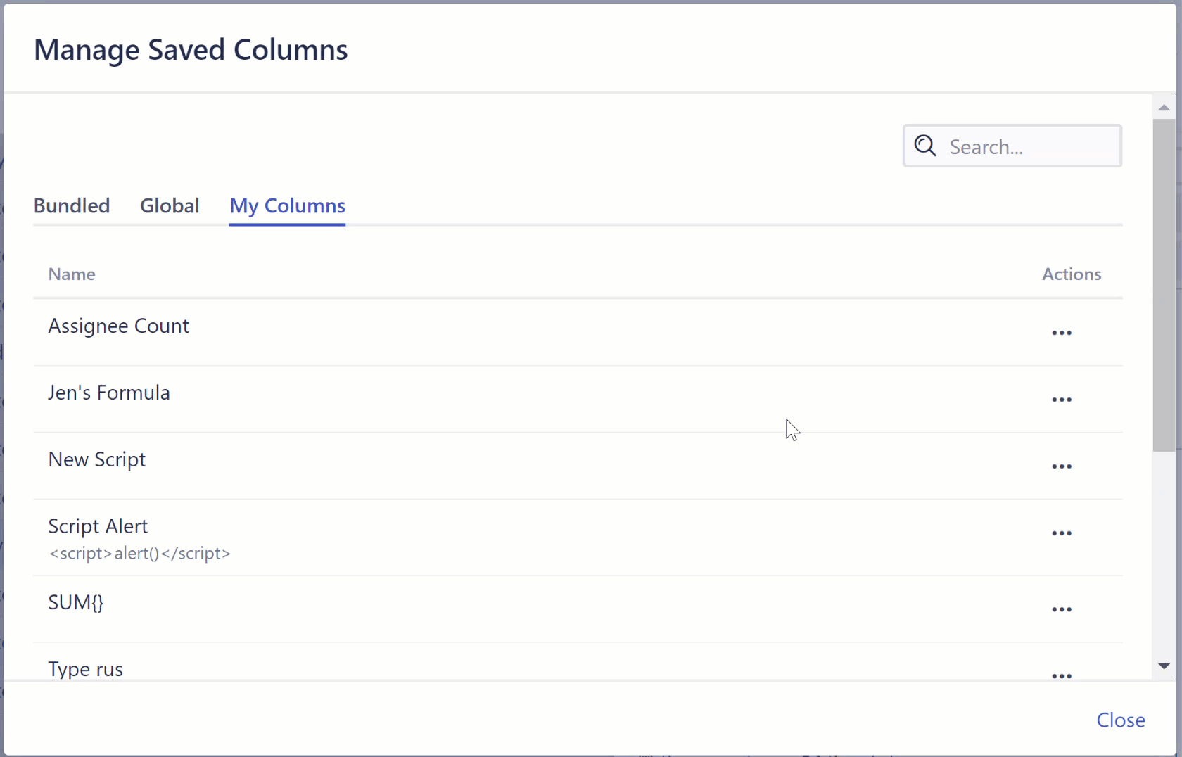 Scroll through the list of saved columns, or use the search bar. Note: if you don't find it, check the other lists (Bundled, Global, My Columns).