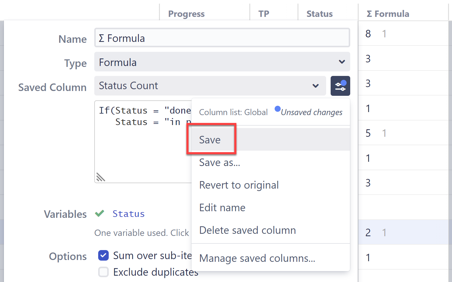 Once you've created a formula you want to save and/or share, you can turn it into a Saved Column, which can be opened and modified in any structure.