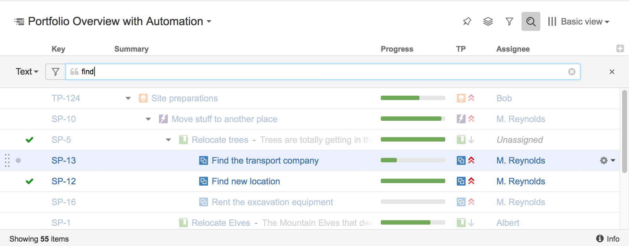 Issue keys | MARS-1, MARS-331 | If the text looks like one or more issue keys (delimited by comma or white space), the search will return exactly these issues (if they are in the structure). |