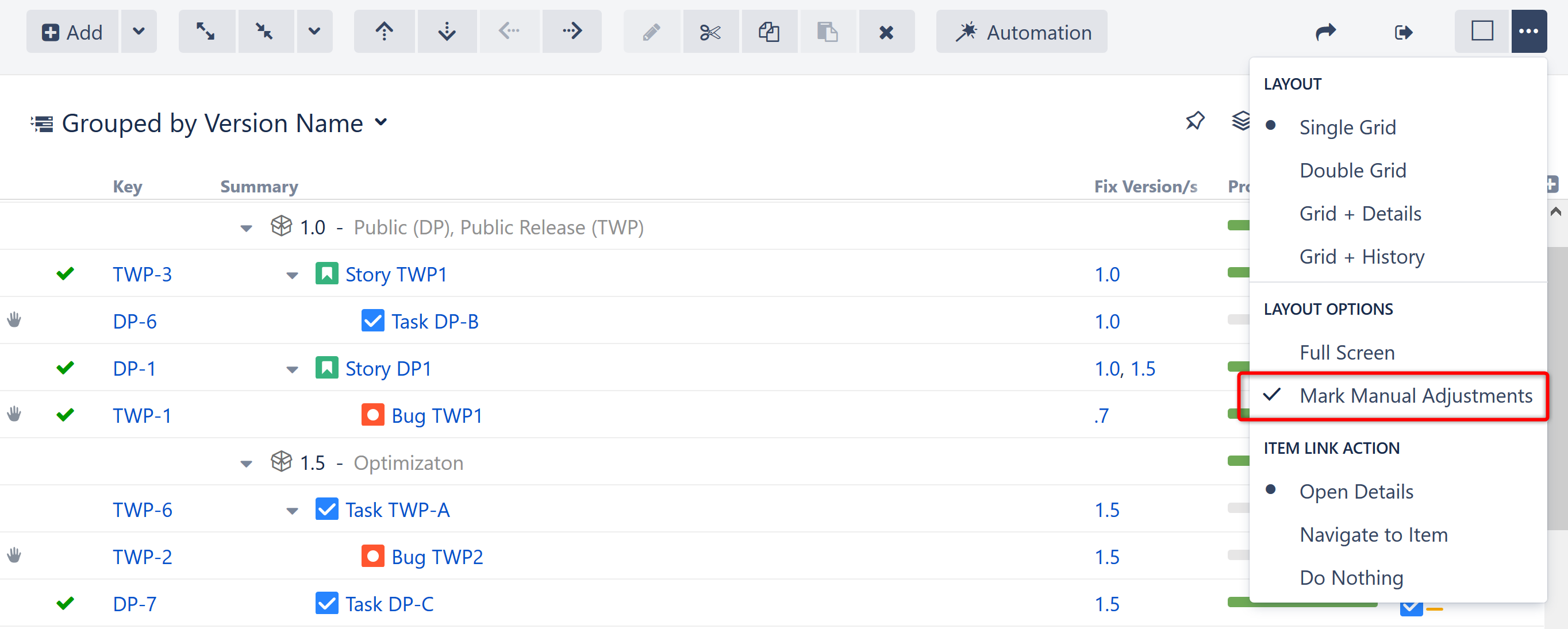 Resolved icons (green checkmarks) are now displayed when an issue is in a Done status category, rather than anytime there is a non-blank resolution