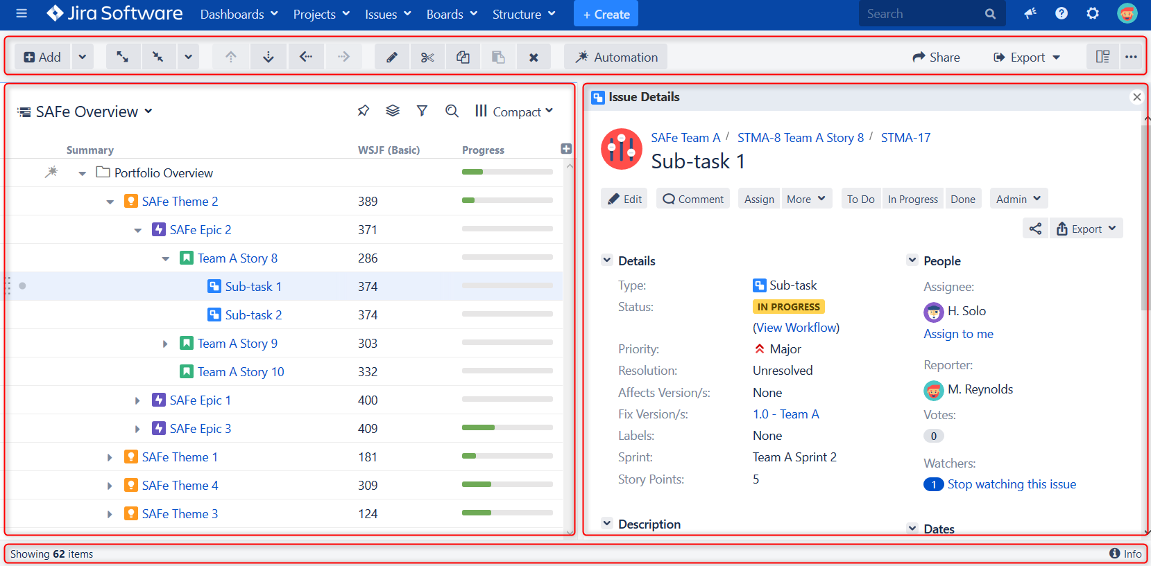 - Working Panels. The left panel always displays the structure widget or search results, while the left panel can display another structure widget, issue details, history and other features based on the add-ons you have installed.