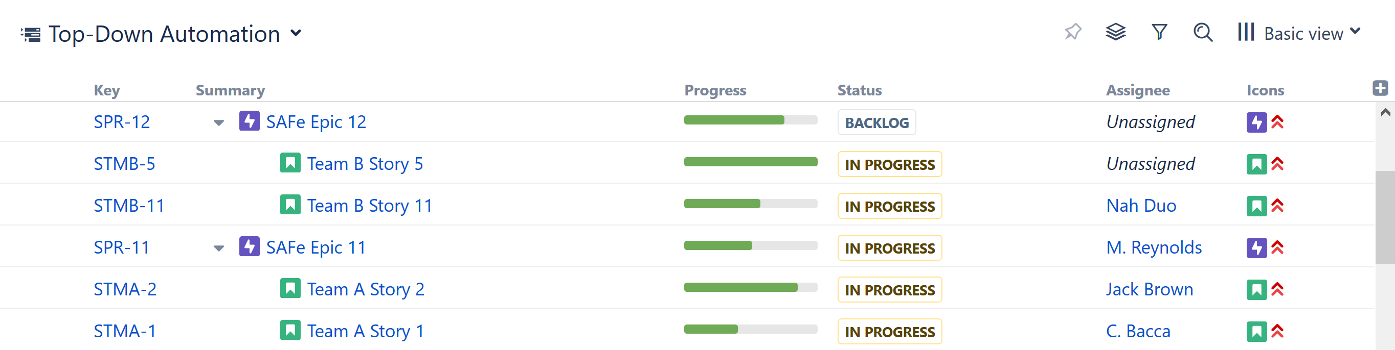 You've built your first Automated structure! Now you can track tasks across your organization, easily follow the progress of stories or epics, and so much more.