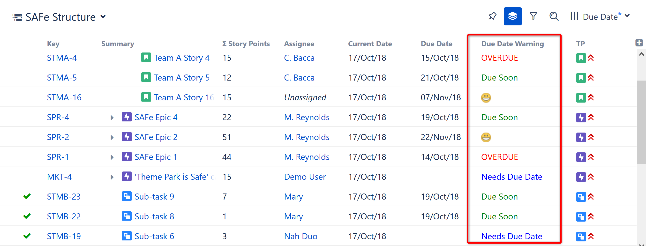 When an issue is due within the next 7 days, the columns displays a green “Due Soon”