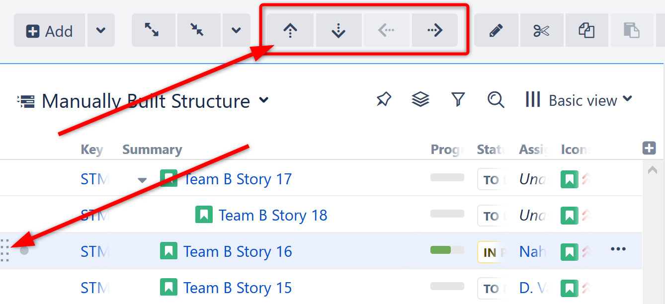 - Drag and drop the item from Jira or another structure (see Building a Structure Manually), or