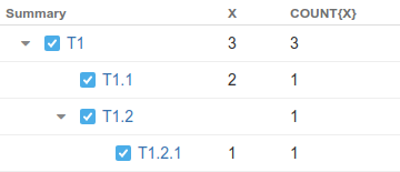 SUM{}(the same asSUM#subtree{}) aggregates values from all descendantsSUM#children{}aggregates values from direct children onlySUM#leaves{}aggregates values from leavesSUM#preceding{}aggregates values from the preceding rowsIf the formula produces an array, it calculates the total of the elements of that array