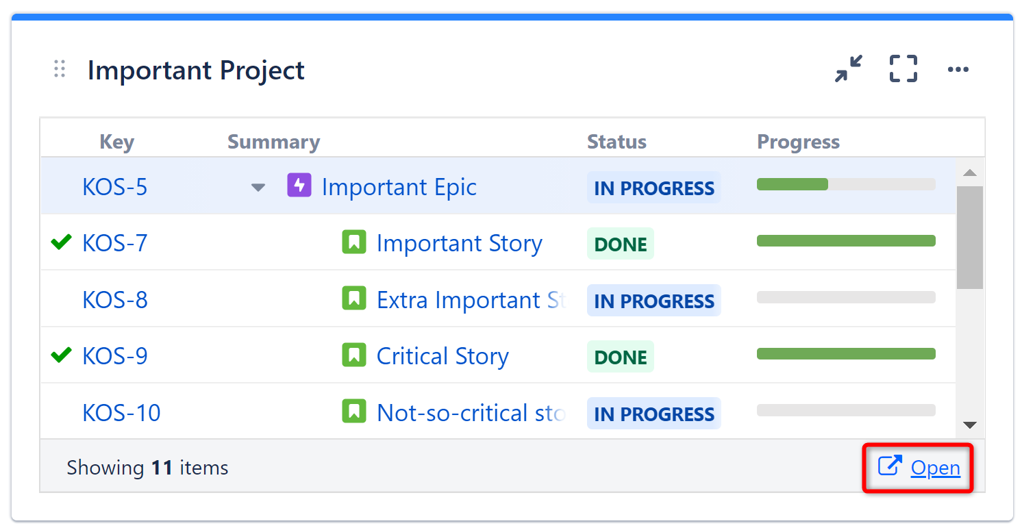 You can view structures and edit work items directly from your Jira dashboard with the Structure dashboard gadget.