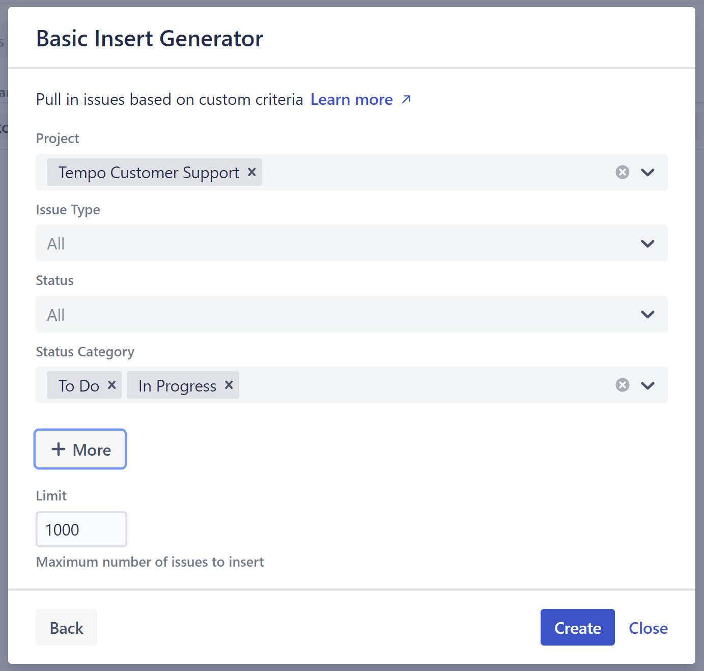 Visualize your entire JSM support queue (even if it's divided into multiple projects), organize data to meet specific needs, and analyze that data with columns and formulas.
