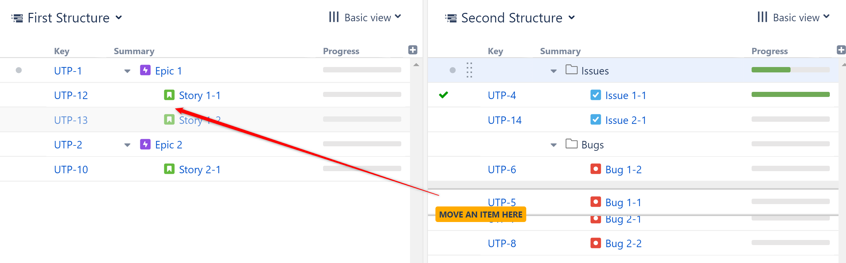 You can also drag items between the two structures (copy), or use cut, copy and paste to move or copy items between them.