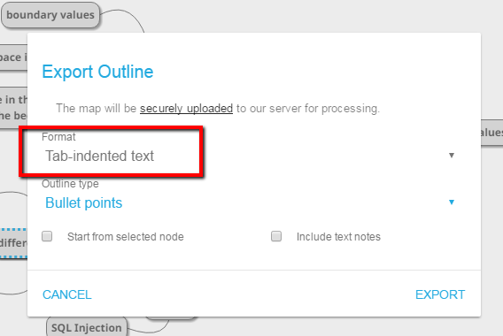 If your mind mapping tool has an export to a text file option with a tab-indented format, you can import it into Structure to be used as a test in Structure.Testy. Below, we show you how to do this using MindMup, but the same steps can be used for many other mind mapping tools.