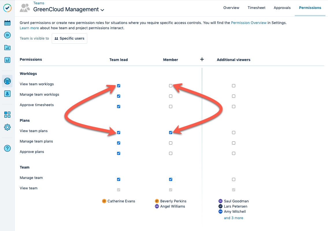 View worklogs and View plans permission on the team level are managed on the team's Permissions page.