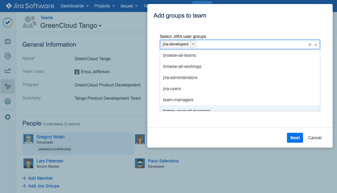 Adding Jira Groups to a Team