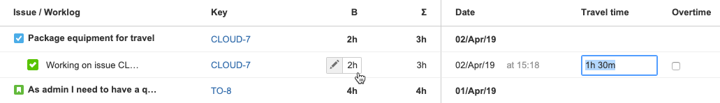 Editing work attributes, billable, and worked hours in timesheets requires the Edit Own Worklogs permission for the project the worklog belongs to. Editing billable hours also requires the Set Billable Hours permission for the project the worklog belongs to.