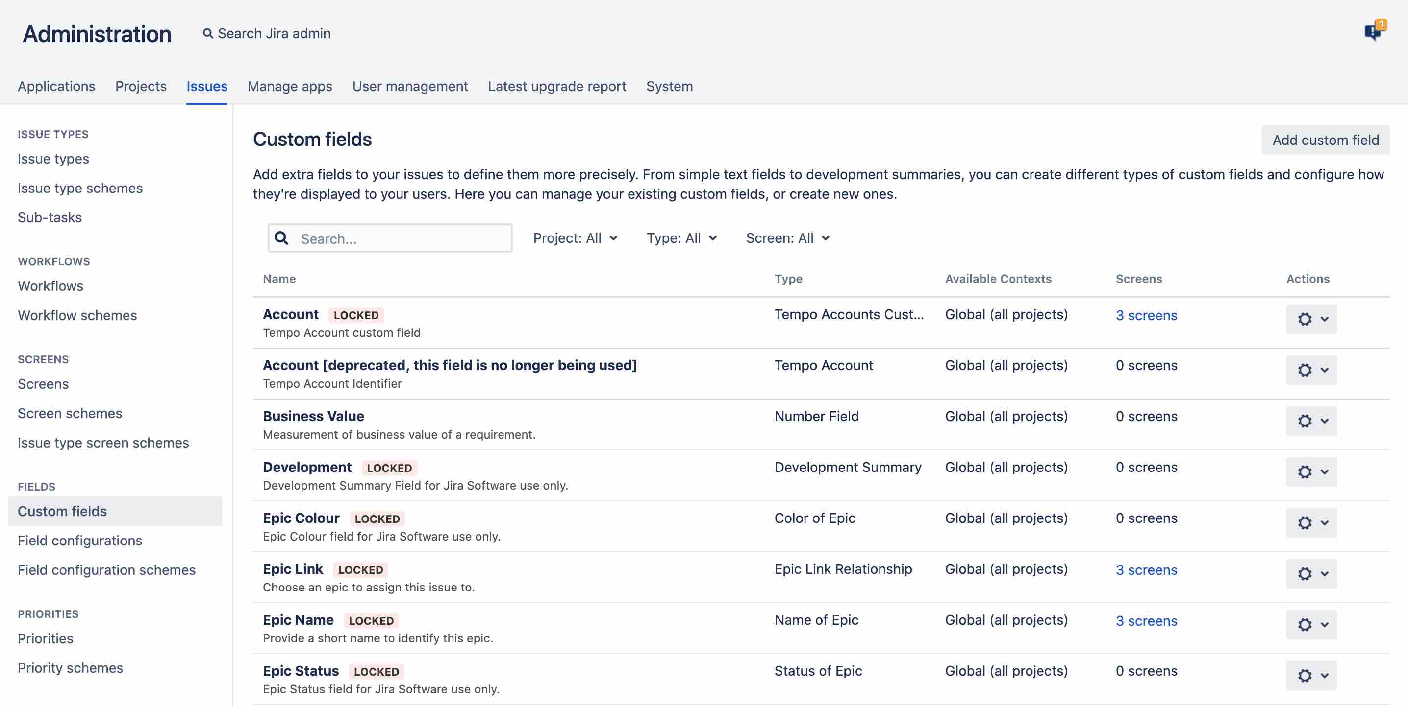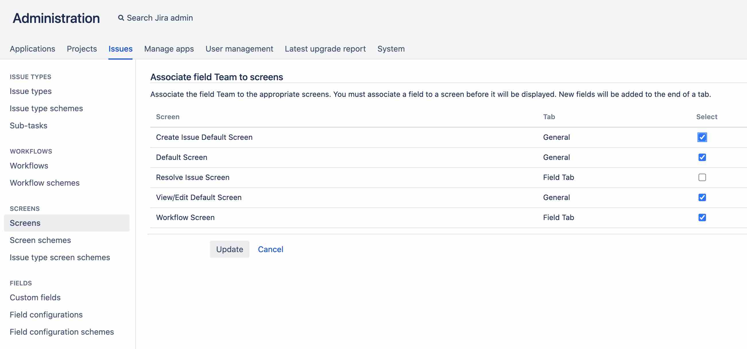 Linking the Tempo Team Custom Field to Jira Issue Screens