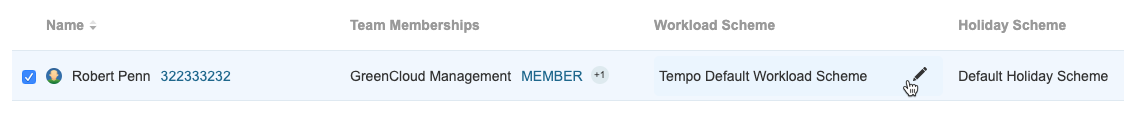 You can quickly change the workload or holiday scheme for a single employee by clicking the Workload Scheme or Holiday Scheme for the user you need to move, select the new workload or holiday scheme, and then click Move to confirm.