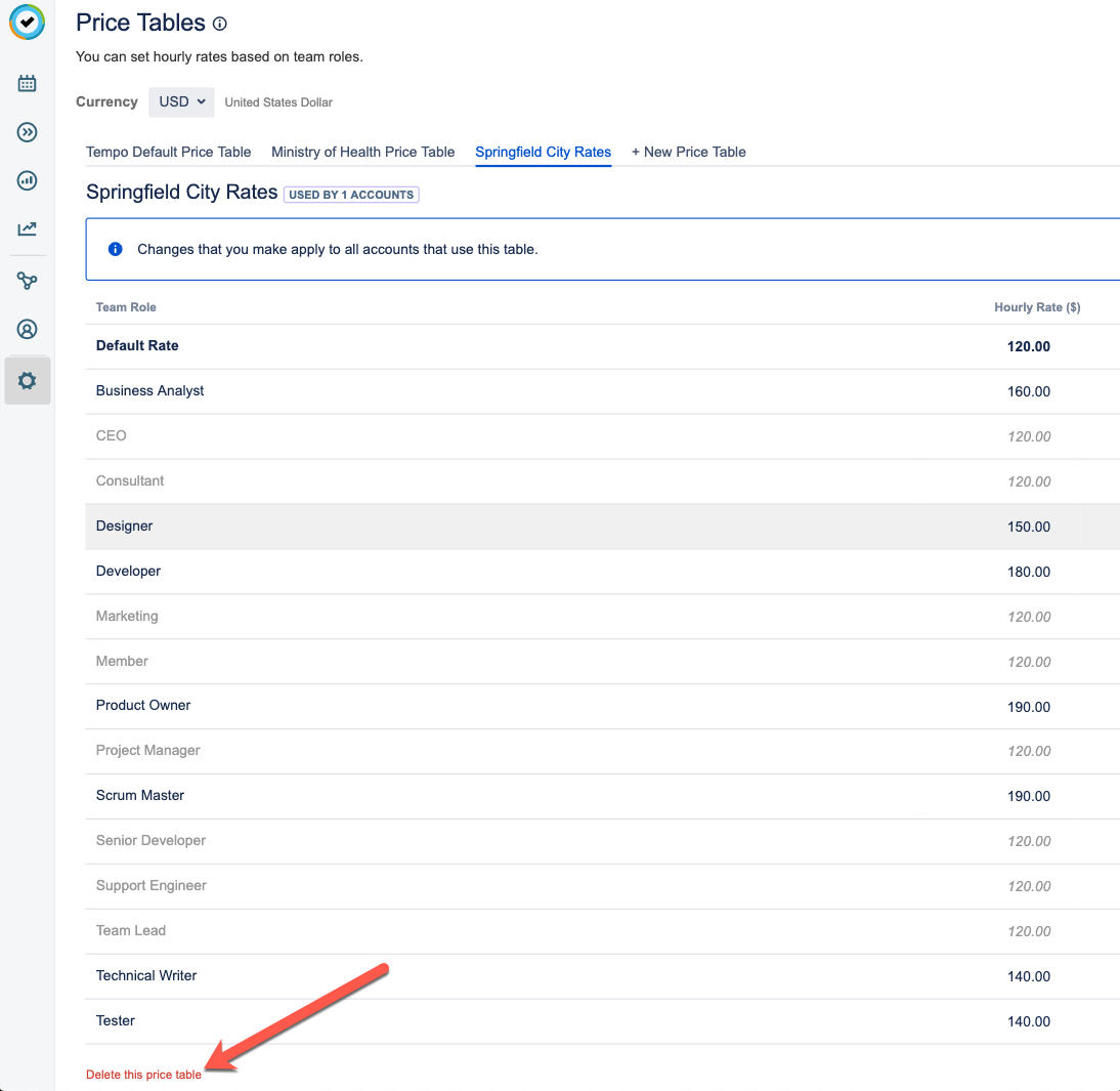 Multiple price tables enable account managers to use different prices for different accounts. New price tables inherit rates and roles of the Tempo Default Price Table.