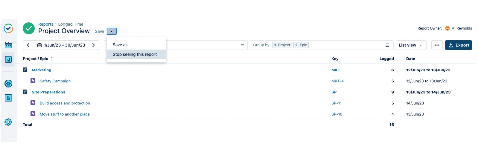 You can share the saved report filter with other users in your organization so that they get the report updates automatically. Using Shared reports, you can skip exporting the reports manually or sending emails and easily share Tempo reports with other users directly.