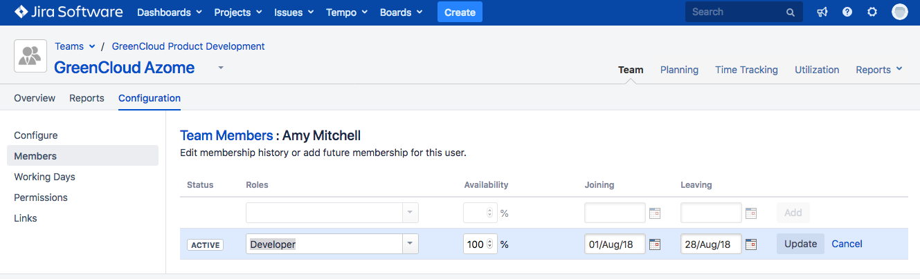 To edit the information about the members of a team in Tempo for Server, you need Tempo Team Administrator permissions or you need to be a member of a permissions group that can manage a team.