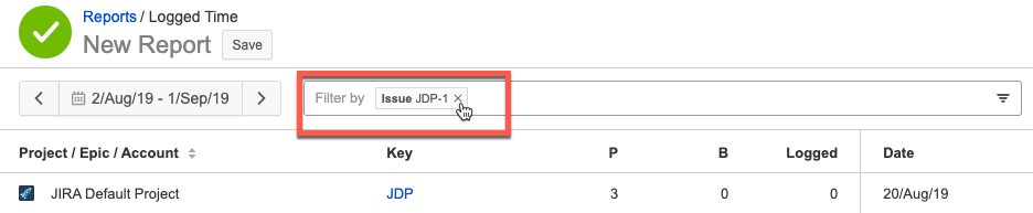 Select filters for the reports to show only the information you need. You can, for example, select to view time logged on a specific project or all planned work for your team. The Filter by box at the top of the report shows which filters are applied.