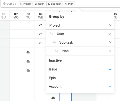 Group data in your reports to help you structure your information in a meaningful way. The groups are displayed in the report according to the Jira hierarchy.